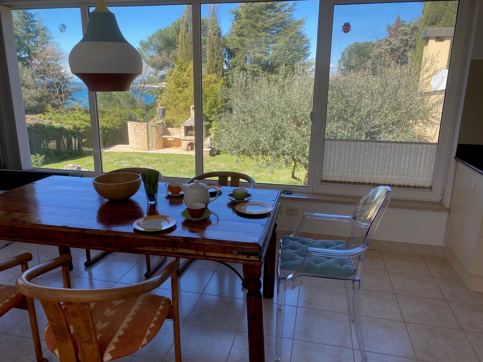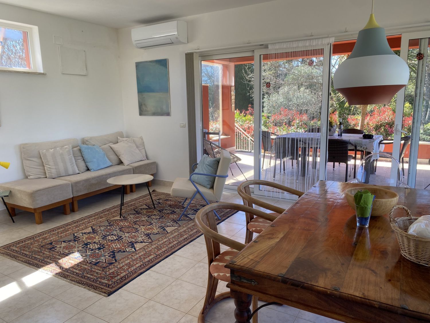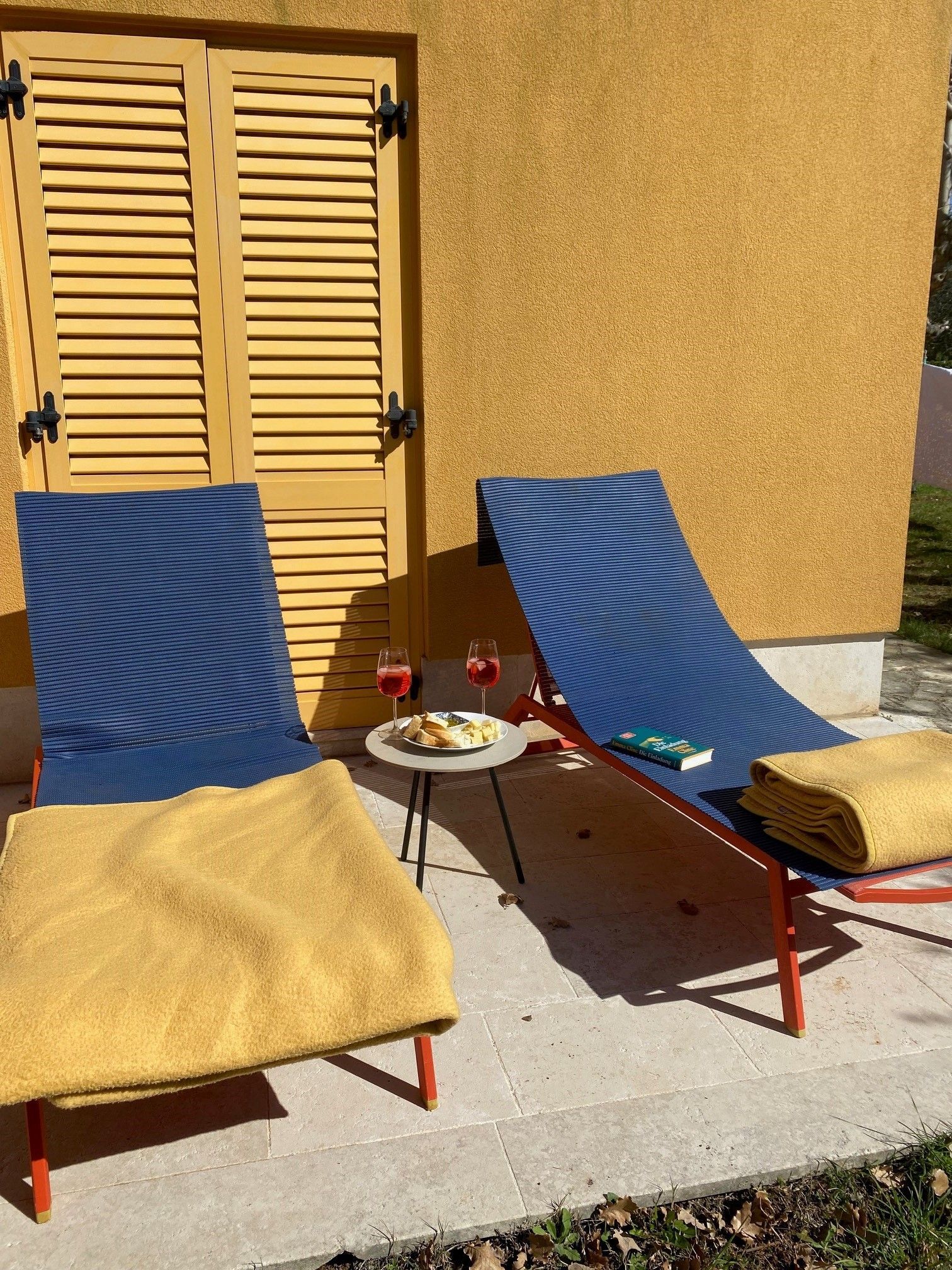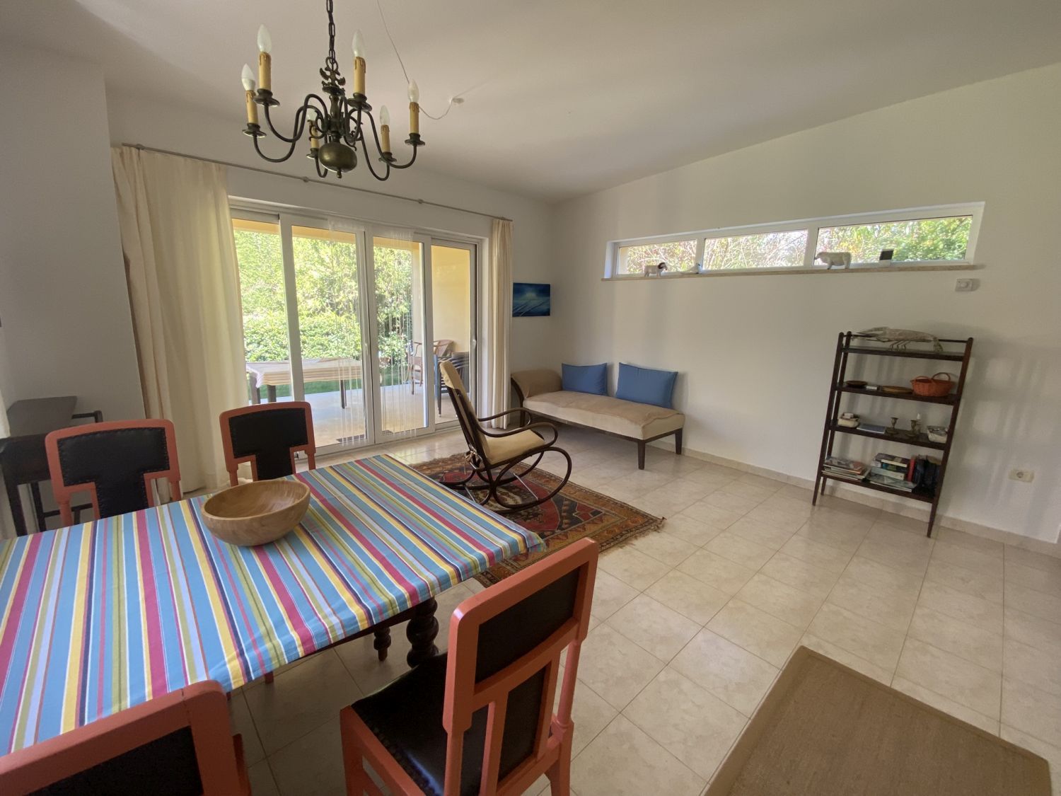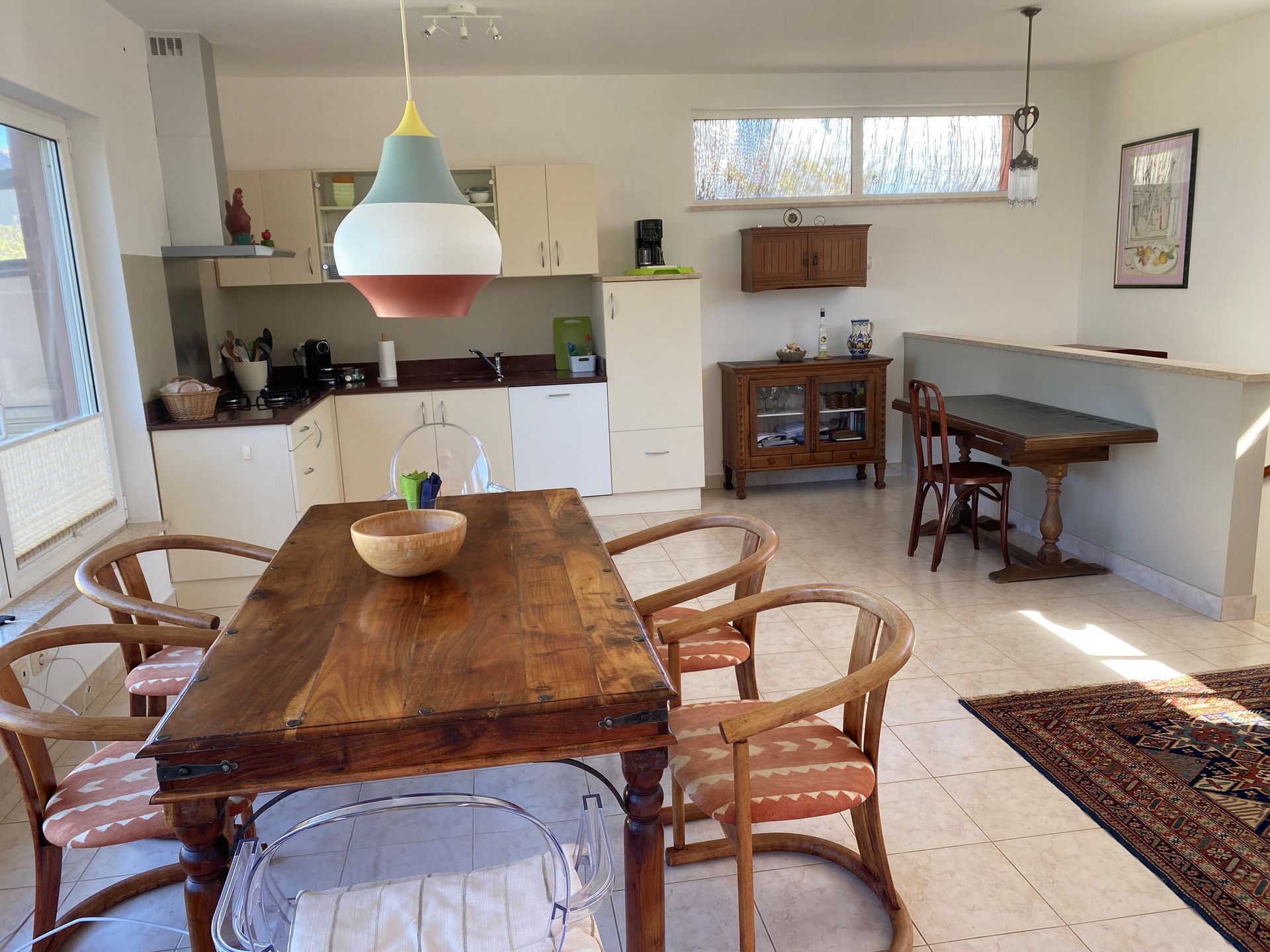 Wohn-/Essbereich, Küche, Garten mit Sonnenliegen, Waschmaschine